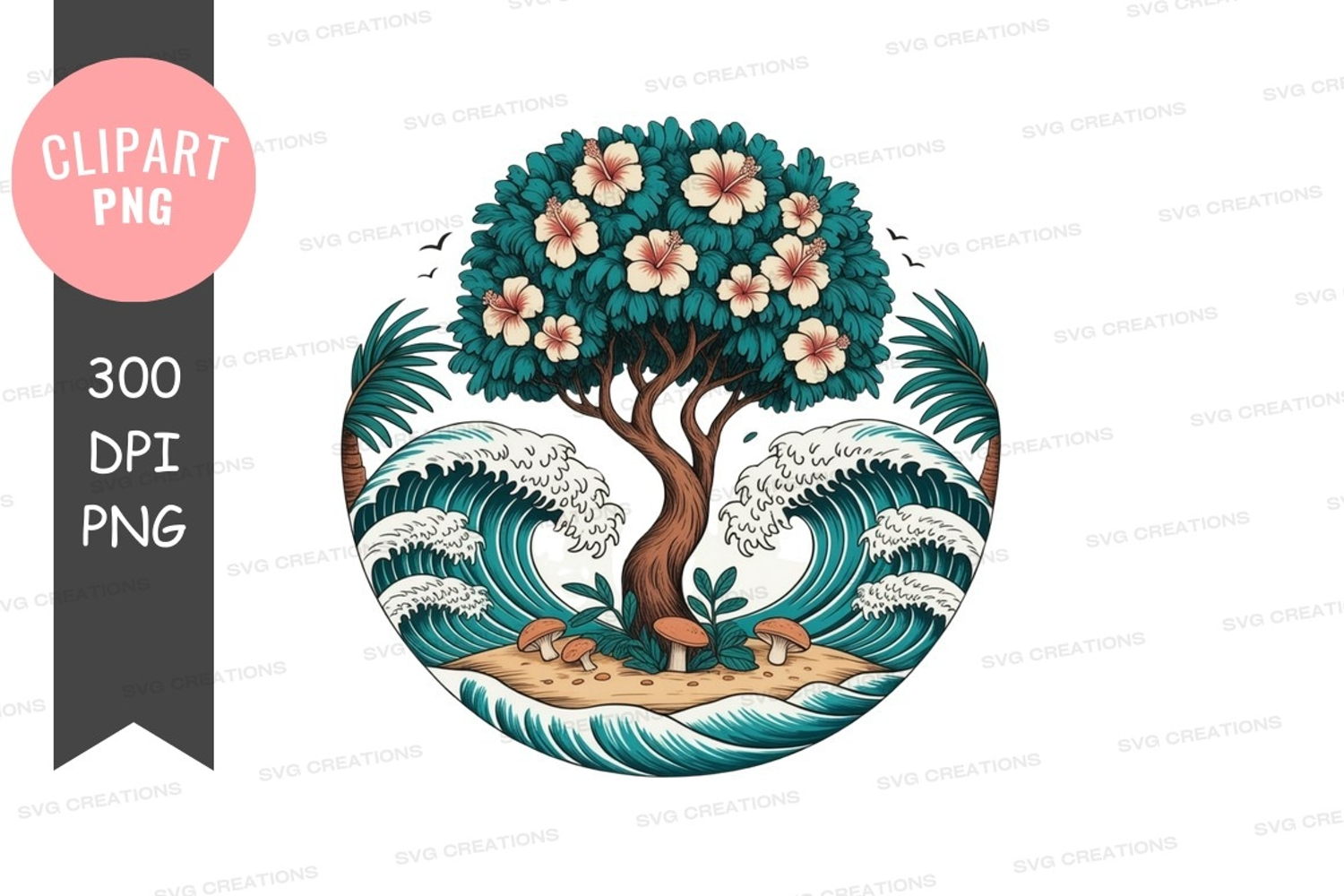 A Serene Illustration Featuring A Tree With Vibran Symbolizing Harmony And Balance Tree Of Life With Waves Clipart Png