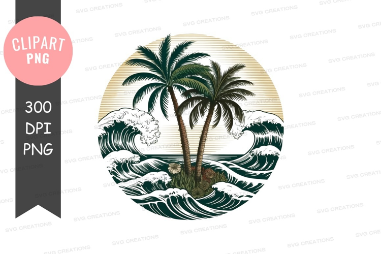 Tropical Island With Palm Trees A Serene Tropical Island Scene Featuring Two Tall A Serene Tropical Island Scene Featuring