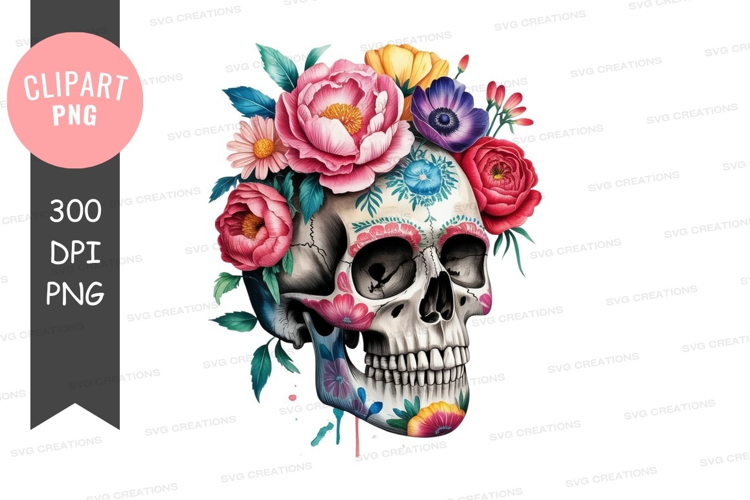 Floral sugar skull clipart png example image 1