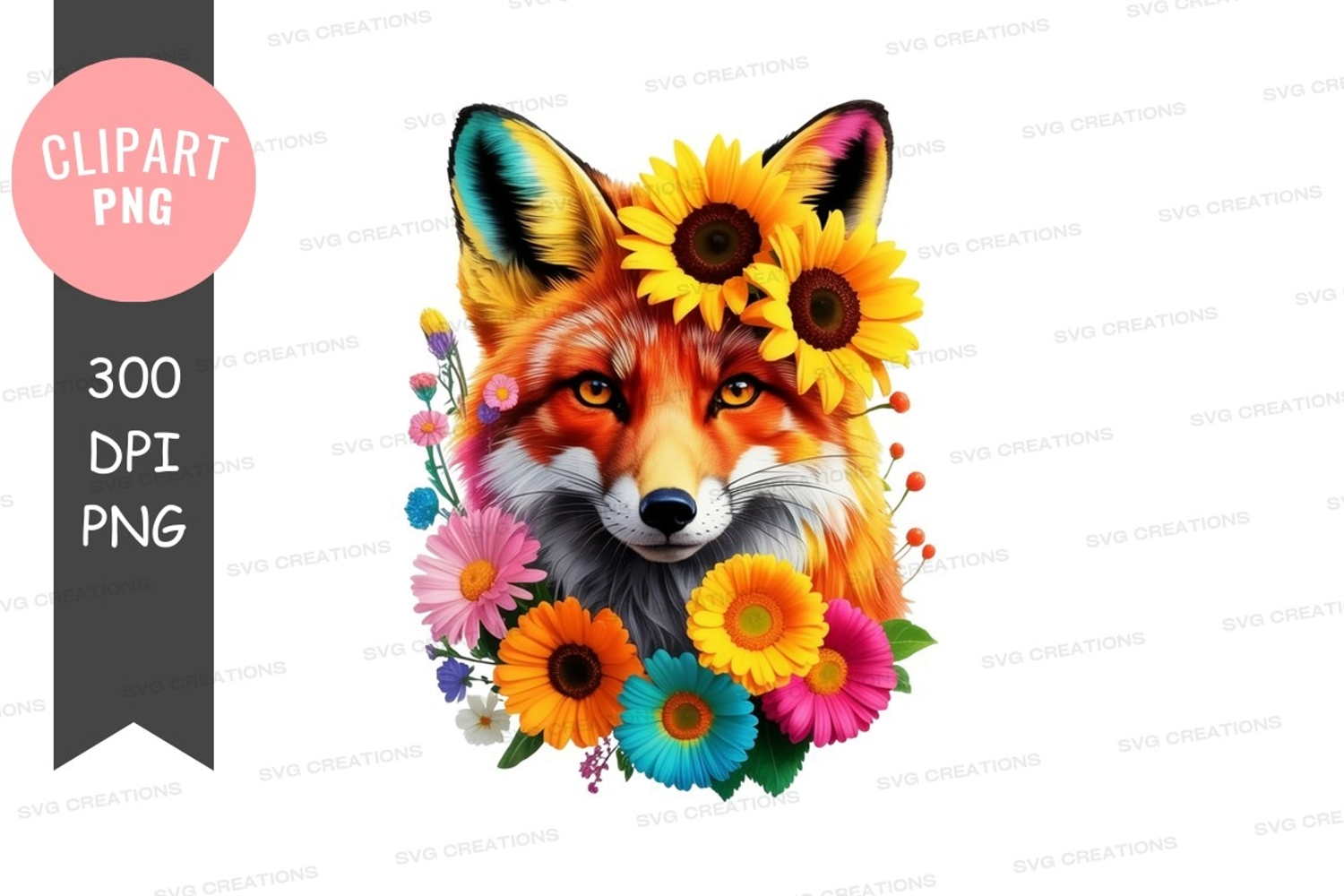 Similar Design Products to Vibrant fox with sunflowers clipart png