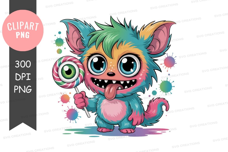 Playful pastel creature with lollipop example image 1