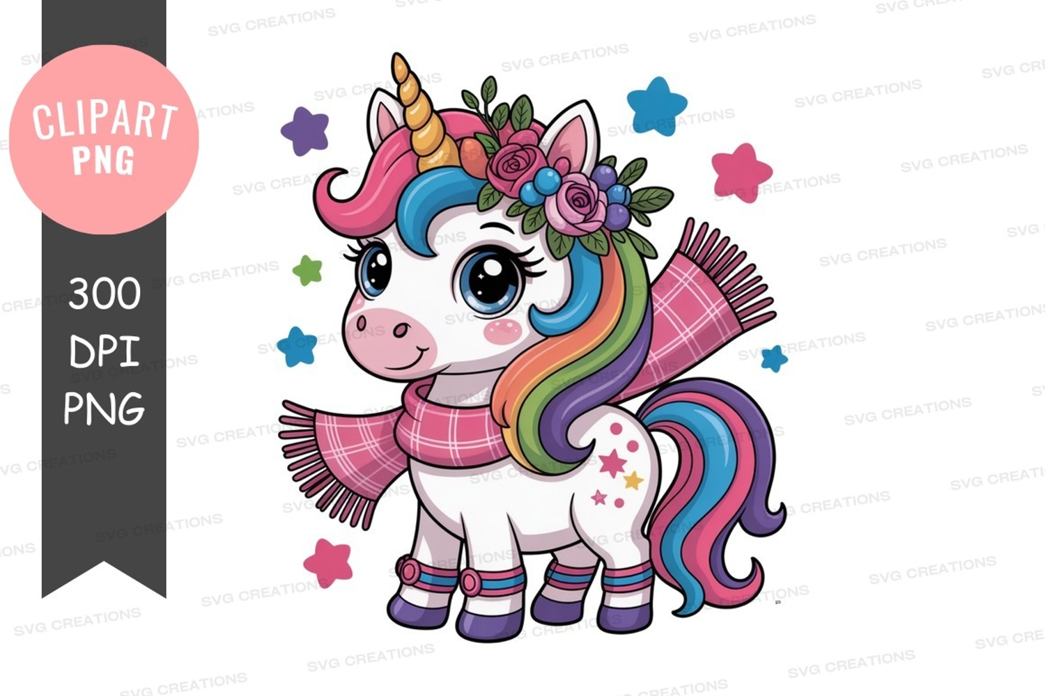Illustration Cartoon Fantasy Unicorn Magical Sparkles Rainbow Hair Flower Crown Triumphant Floating Orbs