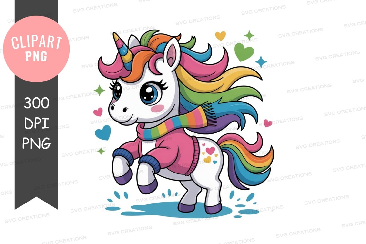 Colorful unicorn clipart png example image 1
