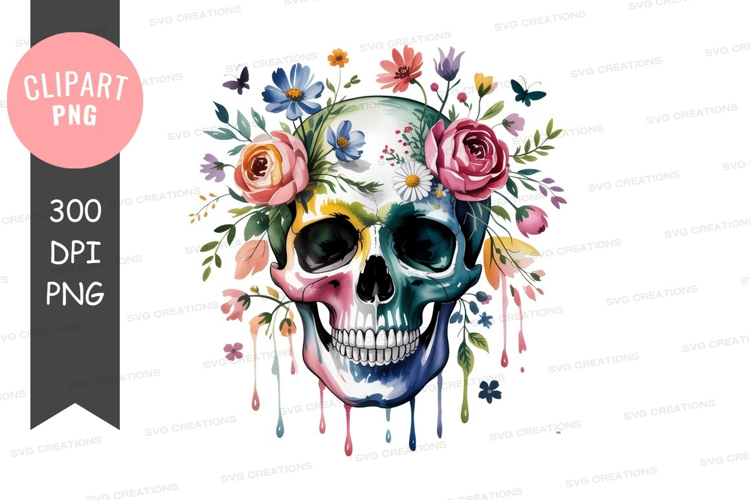 Colorful skull with floral design clipart png example image 1