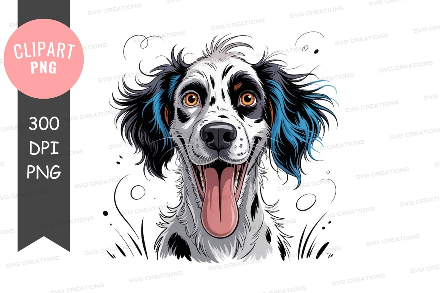 Cartoon Animal Playful Happy Blue Dog Fur Running Tongue Out Clipped