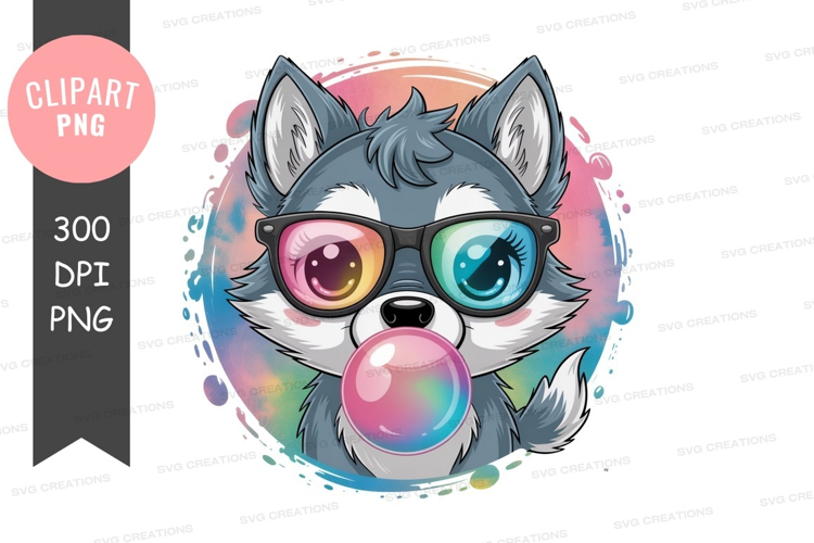 Similar Design Products to Playful husky with sunglasses blowing bubbles