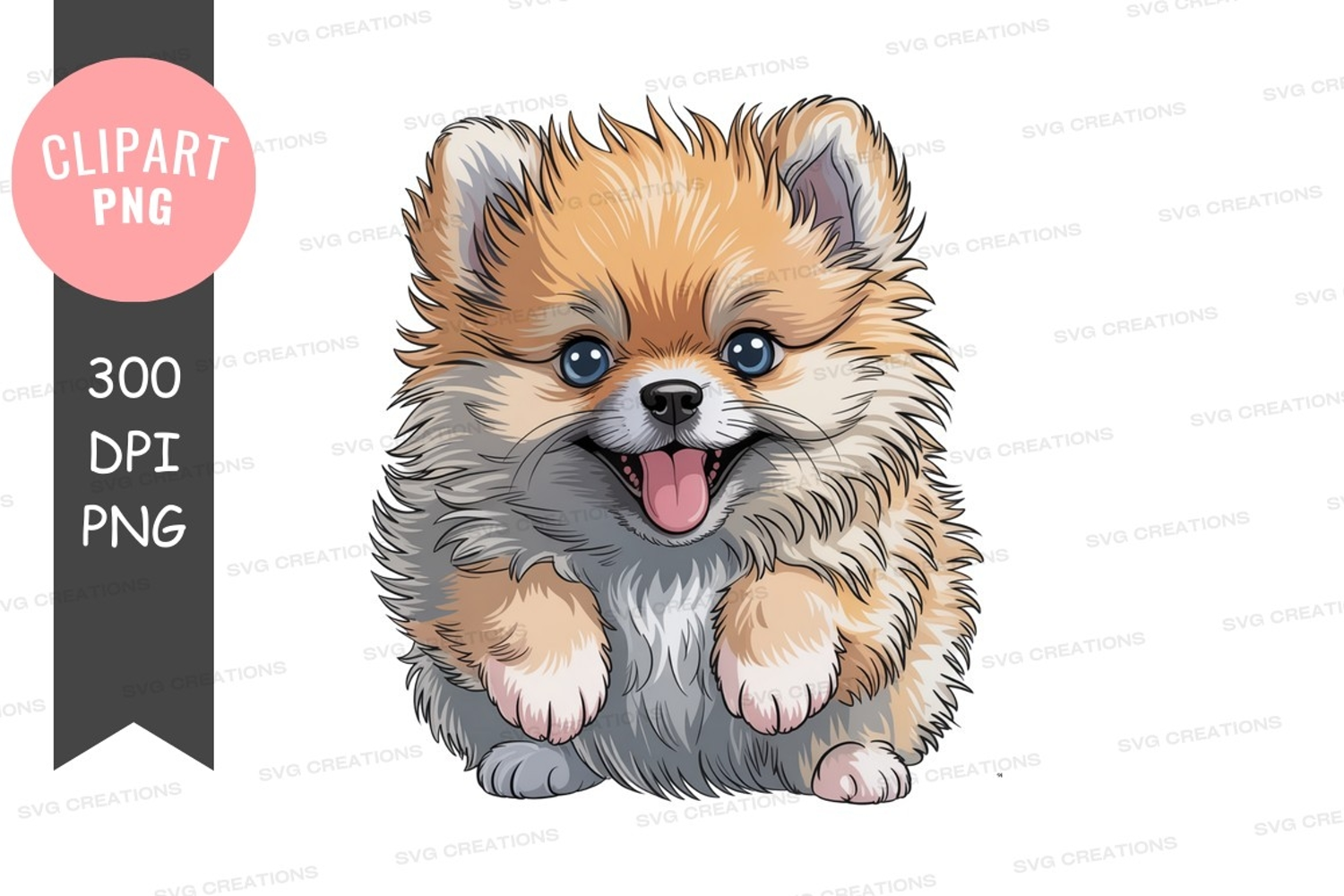 Pink Hair Blue Fur A Cute And Playful Pomeranian Puppy With Bright Bl Depicted In A Cartoon Style The Puppy Is Sitting Giving A Friendly And Happy Vibe