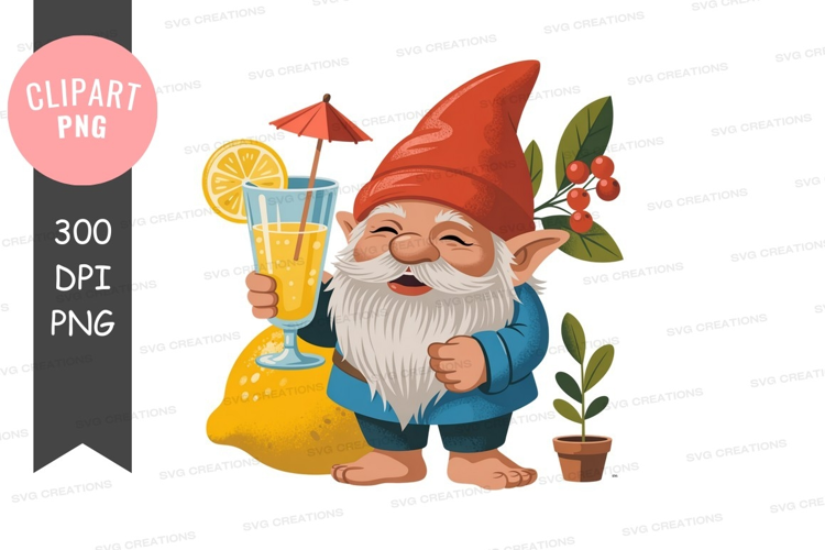 Cheerful gnome with lemonade example image 1