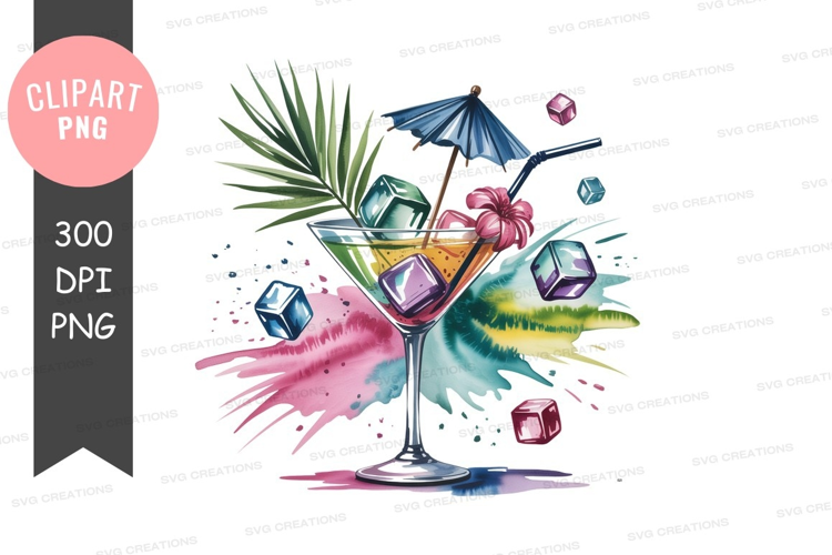 Drink Hibiscus Tropical Cat Cocktail Umbrella Sparkles Lollipop Palm Leaf Ice Cubes
