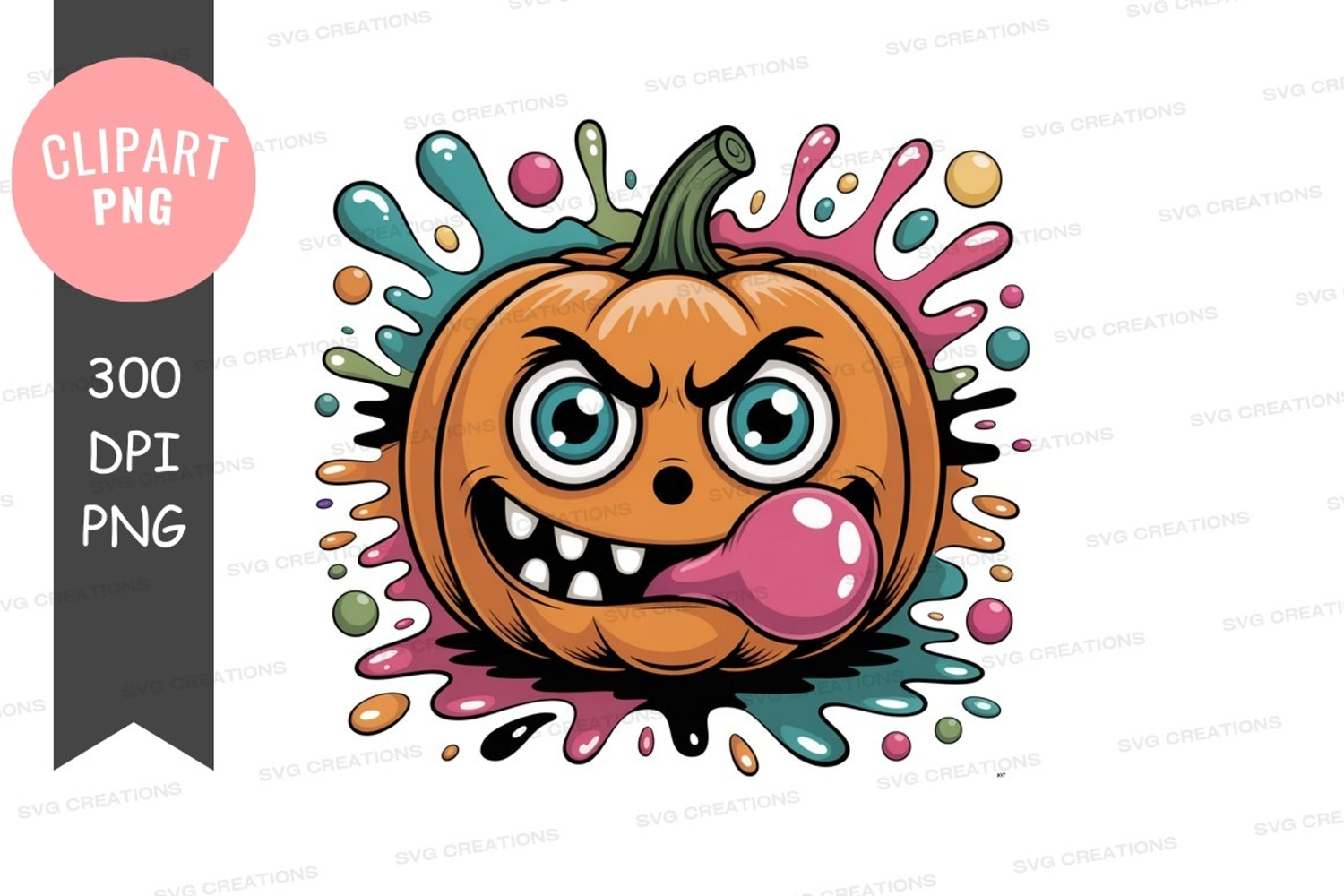 Cartoon Funny Halloween Angry Pumpkin Bubble Gum Blue Eyes Denim Jacket Exaggerated Features