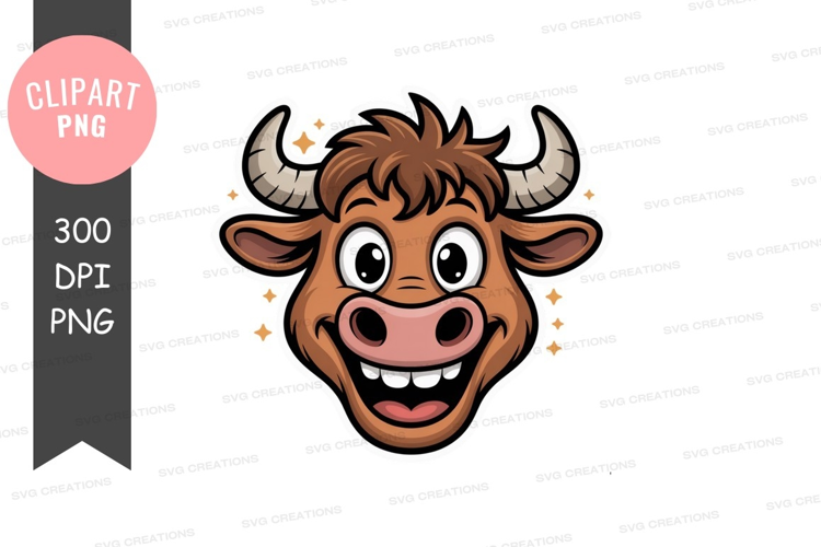 Cartoon Funny Animal Happy Clipart Horns Face Png Cow Ferocious