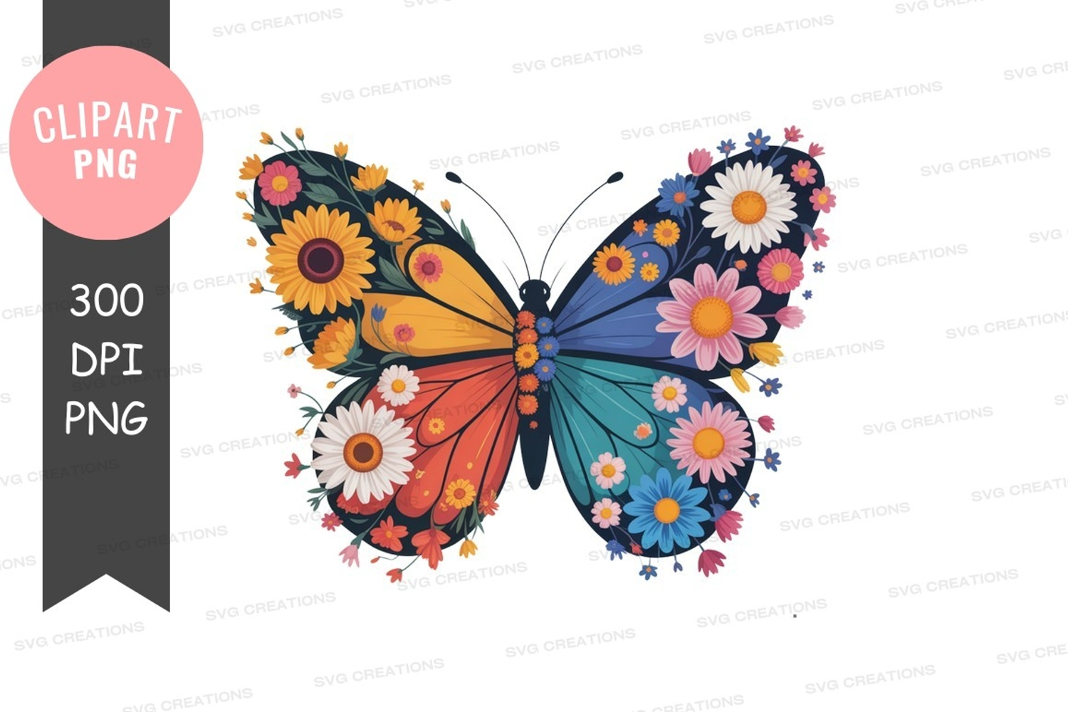 Colorful butterfly with flowers clipart png example image 1