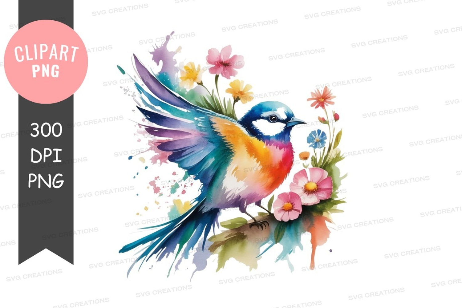 Colorful bird with flowers clipart png example image 1