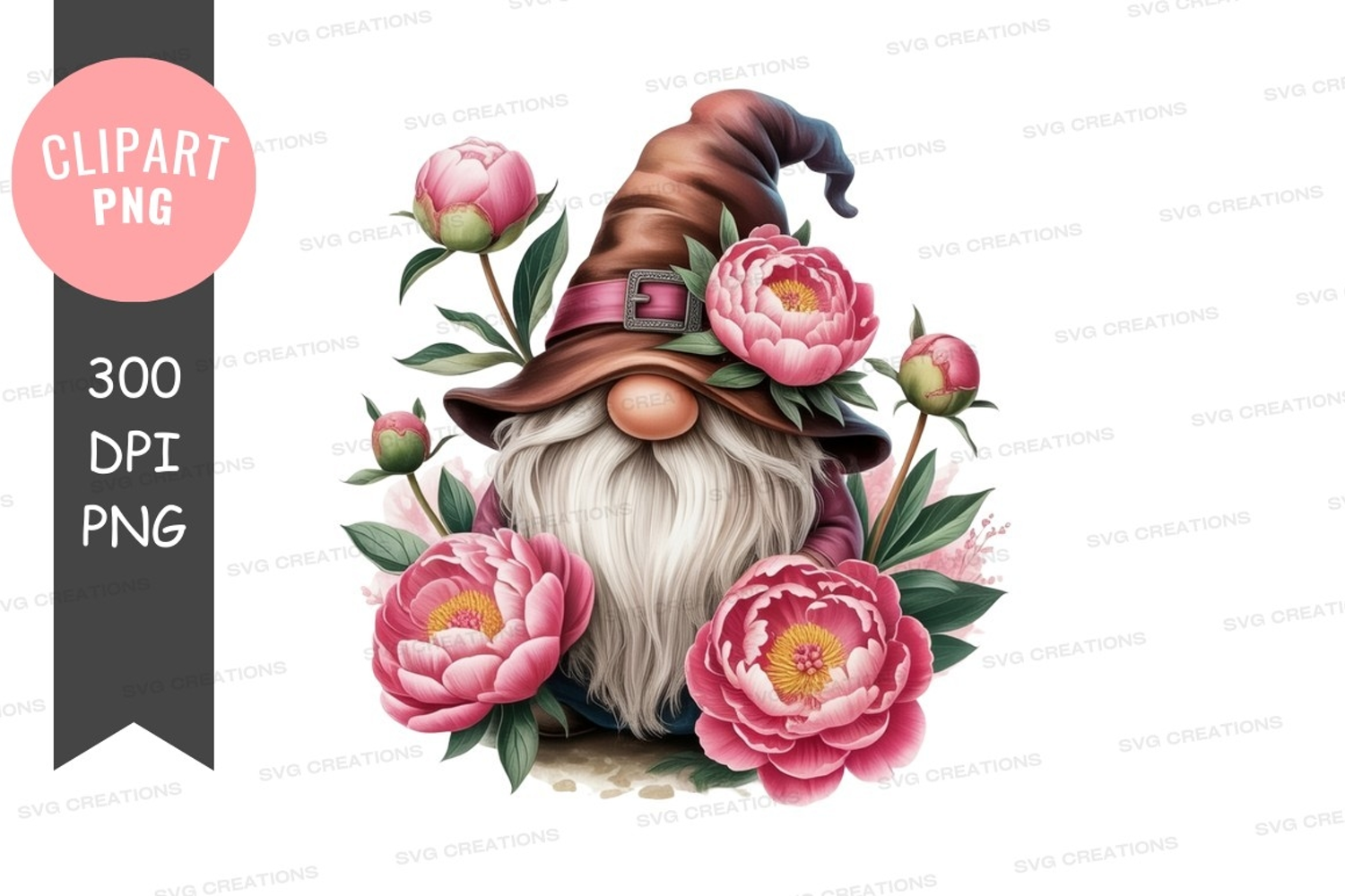 Enchanted gnome with pink flowers example image 1