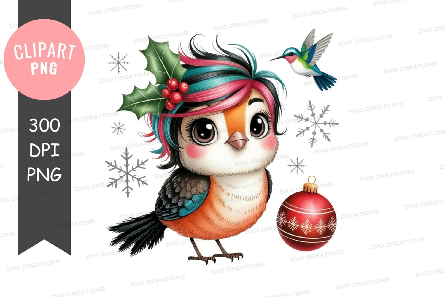 Christmas Bird Clipart Png A Whimsical Illustration Of A Bird Wearing A Color With A Hummingbird Flying Nearby