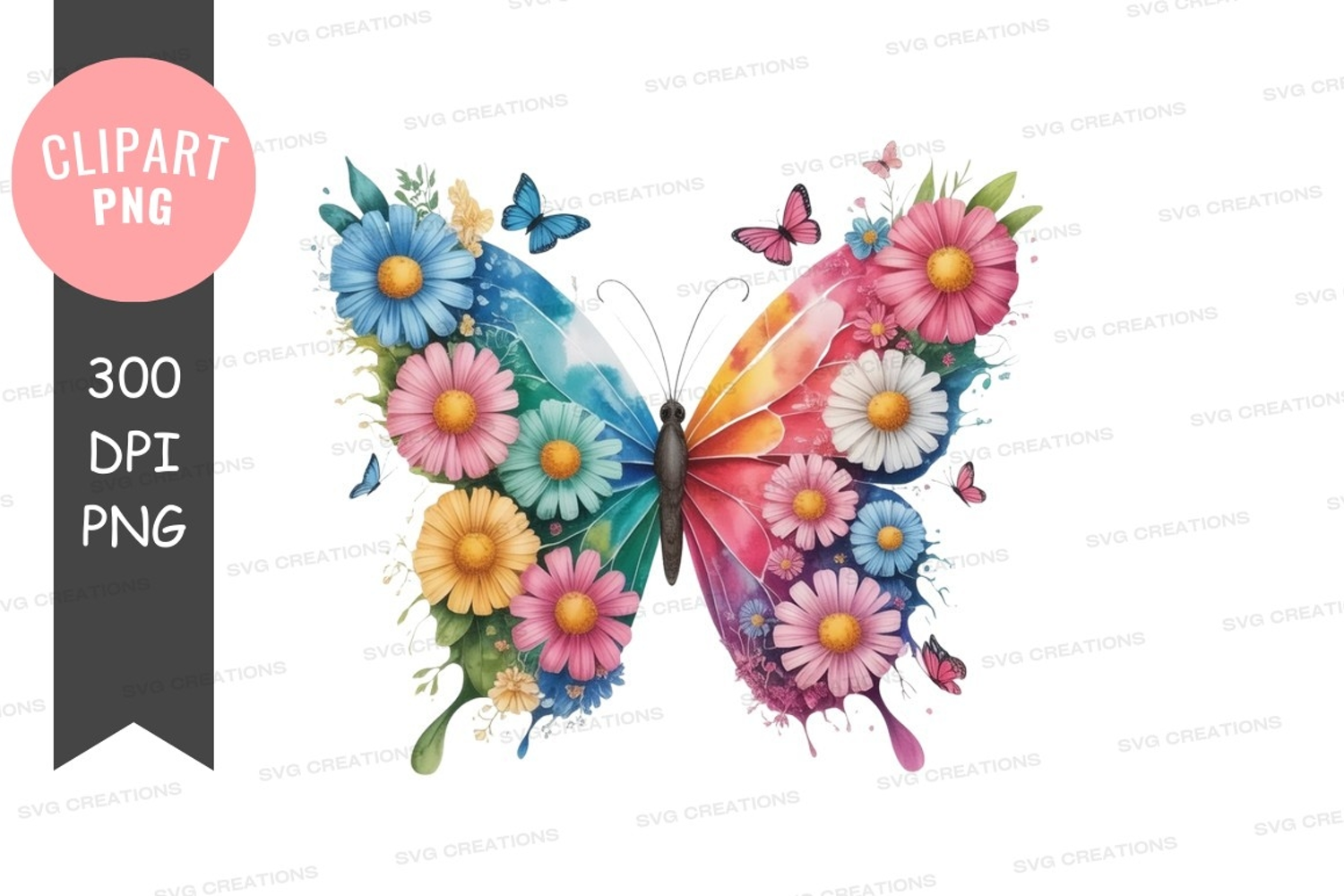 Similar Design Products to Colorful butterfly with flowers clipart png