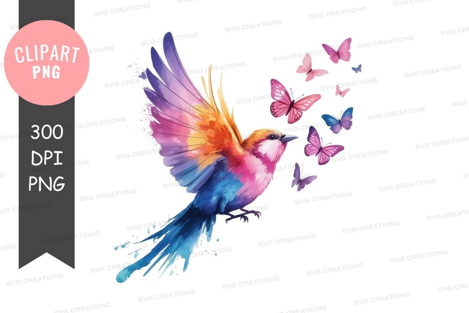 Rendered In A Watercolor Style A Colorful Illustration Of A Bird In Flight Surrou Vibrant Bird With Butterflies Clipart Png