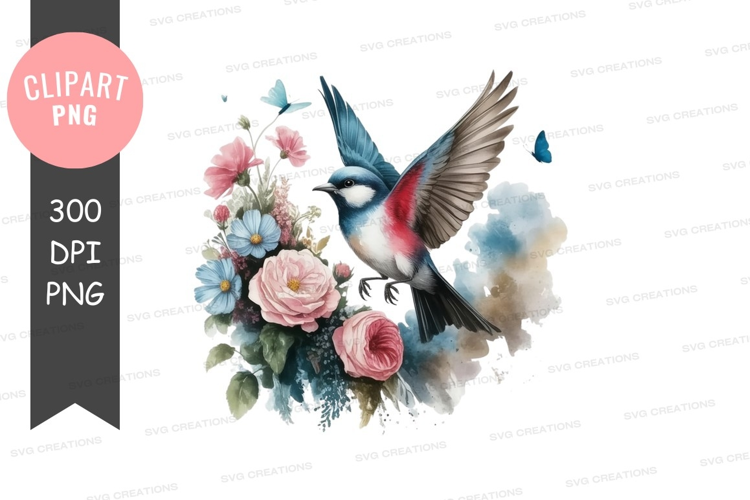 Similar Design Products to Bird in flight with flowers clipart png
