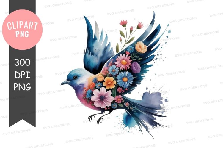 Bird with floral wings clipart png example image 1