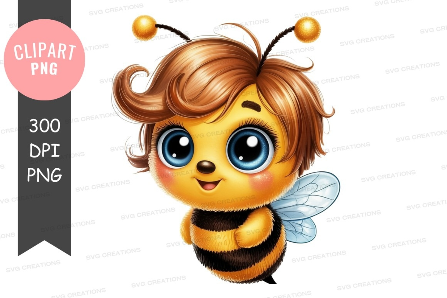 Brown Hair A Cute And Colorful Cartoon Illustration Of A Bee And A Cheerful Expression The Bee Has Translucent