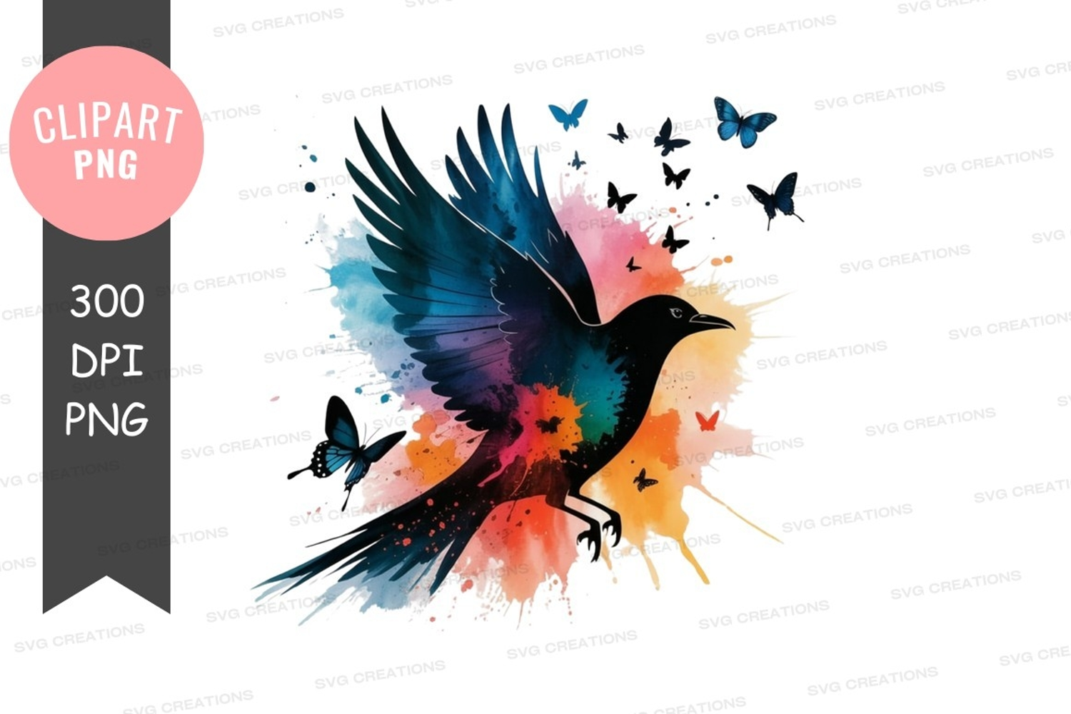 Creating A Dynamic And Artistic Effect A Colorful Illustration Of A Bird In Flight Surrou Set Against A Splatter Paint Background The Bird