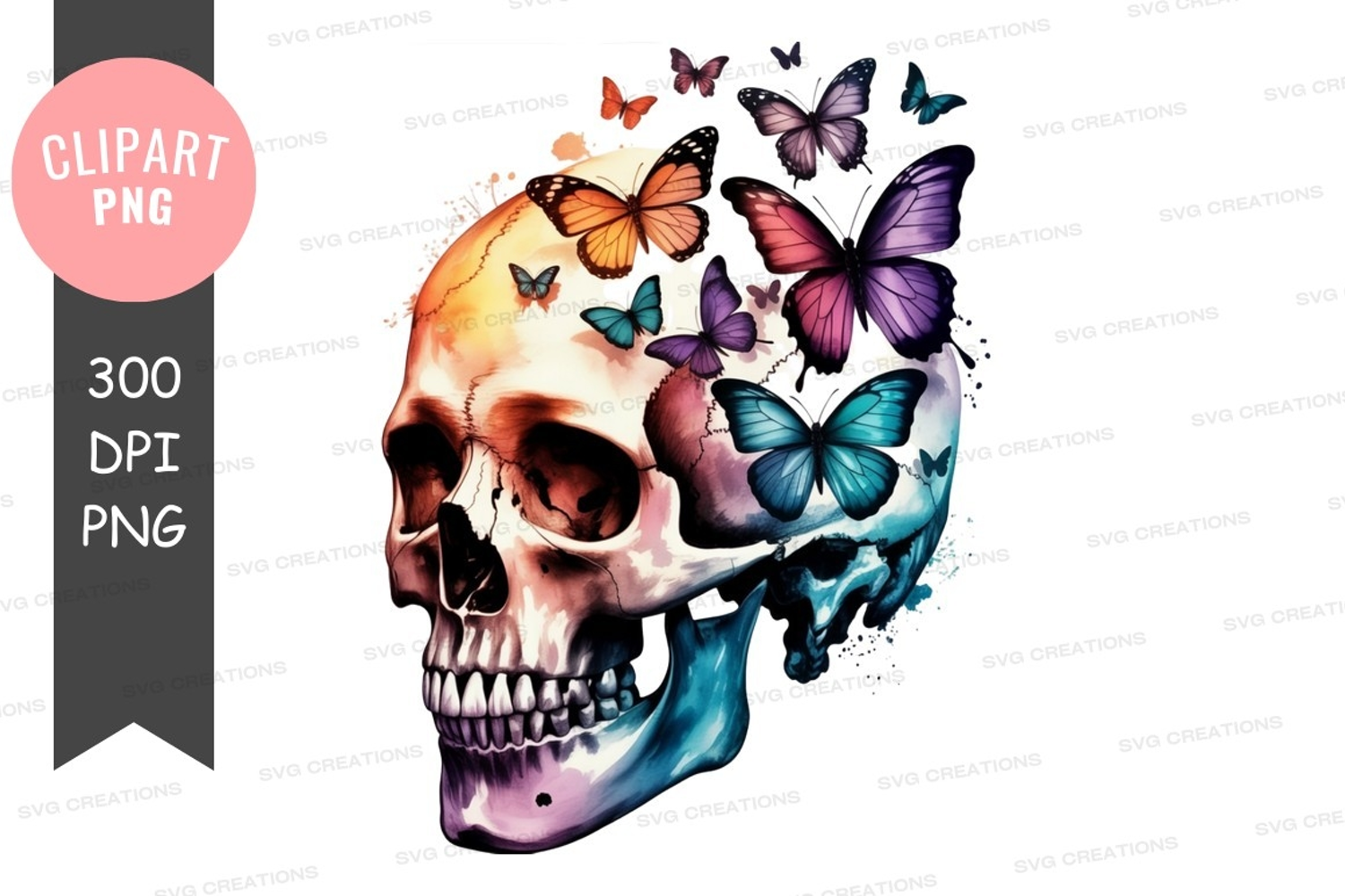 Similar Design Products to Colorful skull with butterflies clipart png