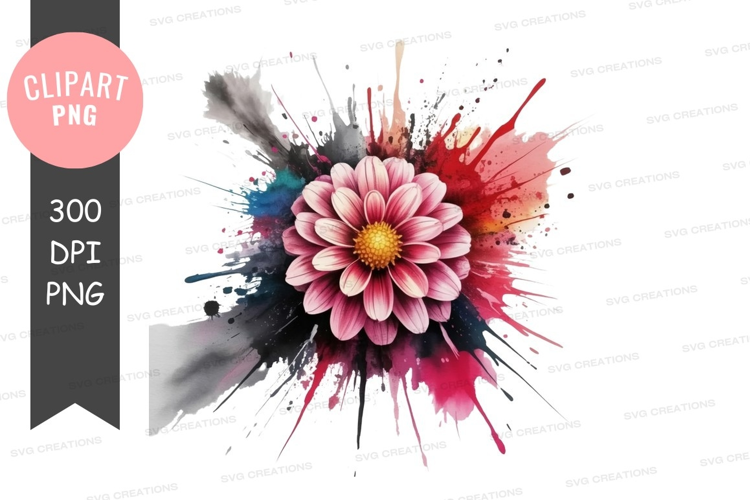 A Beautiful Pink Flower With A Yellow Center Is Su Creating A Visually Striking And Artistic Image Vibrant Flower Splash Clipart Png