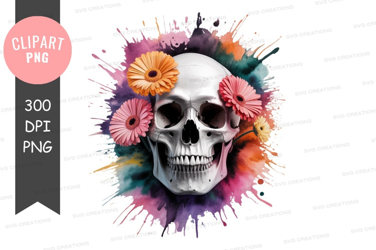 Similar Design Products to Skull with colorful flowers clipart png
