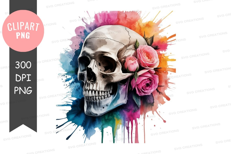 A Detailed Illustration Of A Skull Adorned With Vi Set Against A Colorful Splatter Background The Im Creating A Striking And Artistic Visual