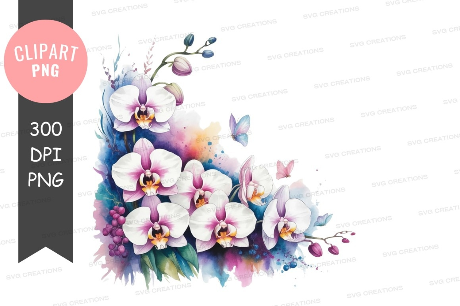 Set Against A Soft Watercolor Background A Beautiful Illustration Of A Bouquet Of White And Elegant Orchid Bouquet Clipart Png