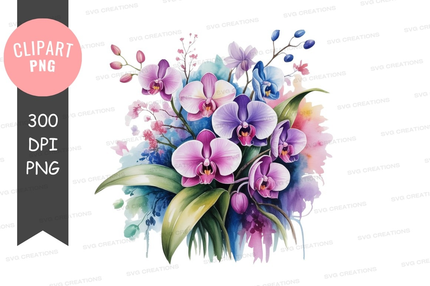 Presented In A Watercolor Style With A Transparen A Vibrant Illustration Of A Bouquet Featuring Vari Colorful Orchid Bouquet Clipart Png