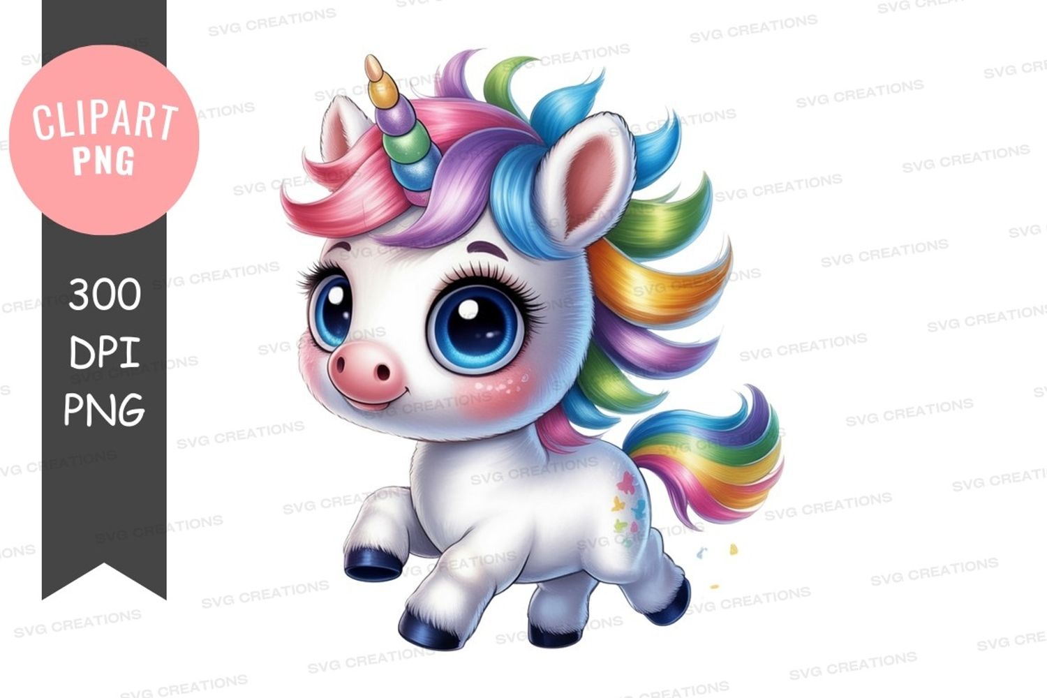 A Vibrant And Whimsical Illustration Of A Cartoon Large Blue Eyes And A Pink Nose The Unicorn Has A Golden Horn And