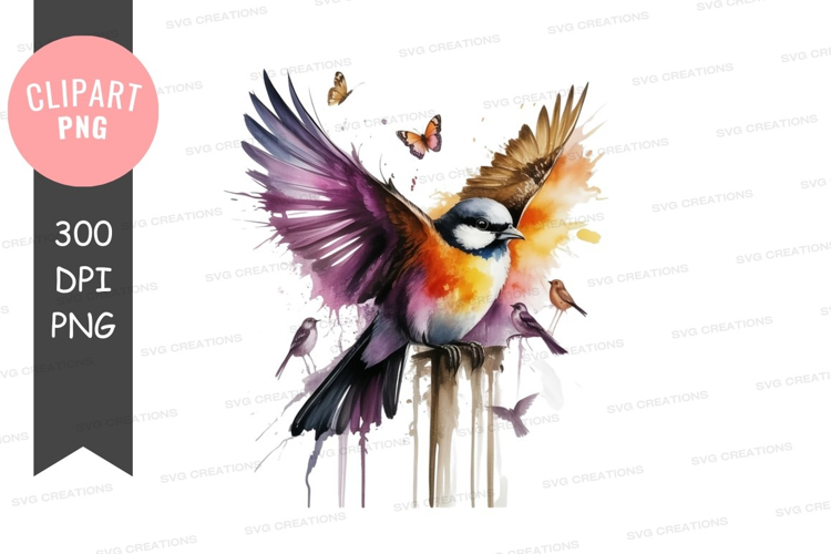 Orange And Yellow A Colorful Illustration Of A Bird In Mid-flight Surrounded By Smaller Birds And Butterflies The B Creating A Dynamic And Artistic Scene