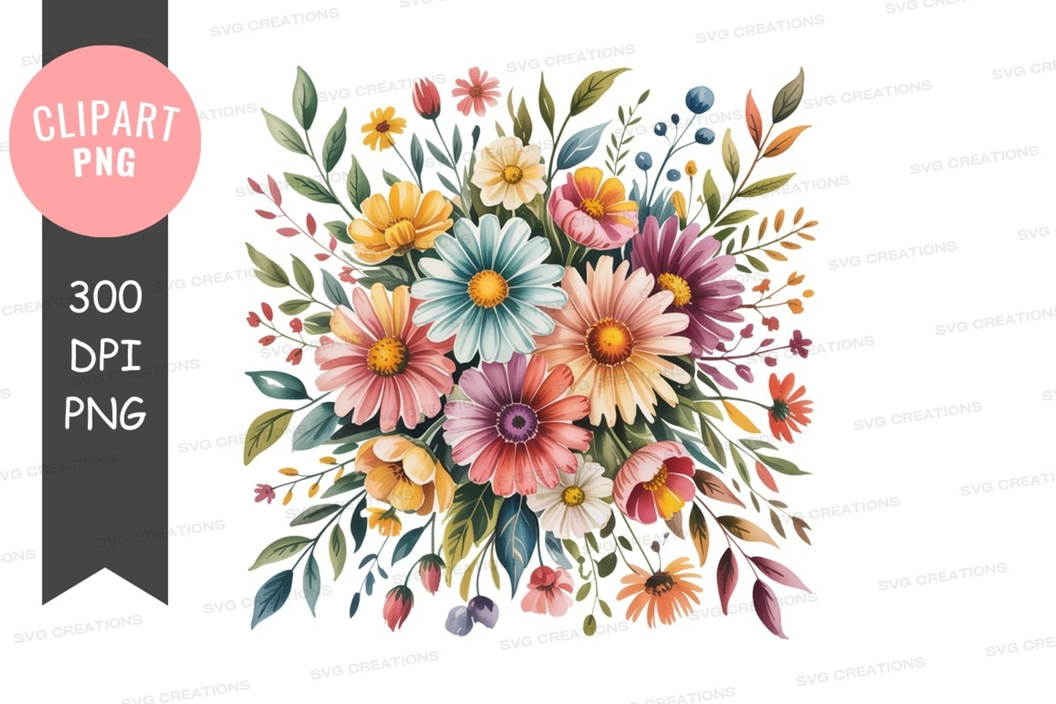 Tulips Creating A Lively And Cheerful Atmosphere A Beautifully Arranged Bouquet Of Colorful Flowers Depicted In A Watercolor Style The Flowers Includ And Other Colorful Blossoms
