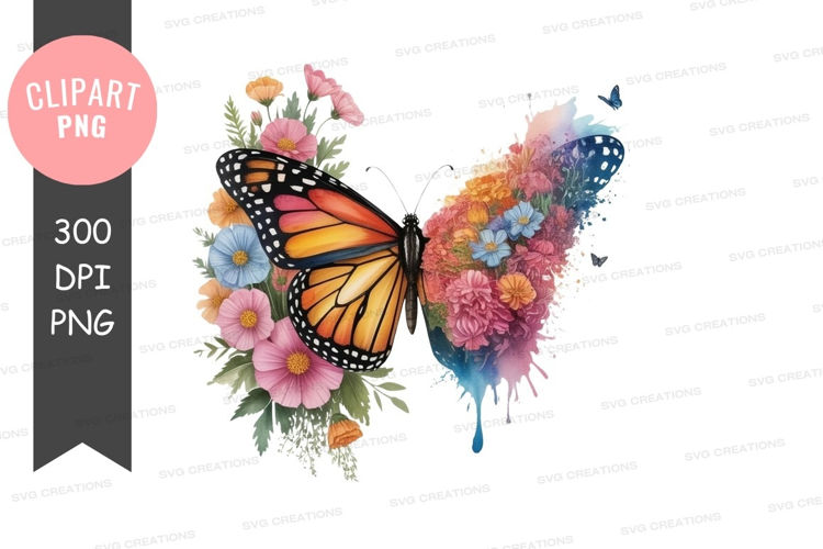 A Vibrant Illustration Of A Butterfly With Colorfu Surrounded By An Array Of Flowers And Leaves The Artistic Style With Watercolor-like Splashes Of C
