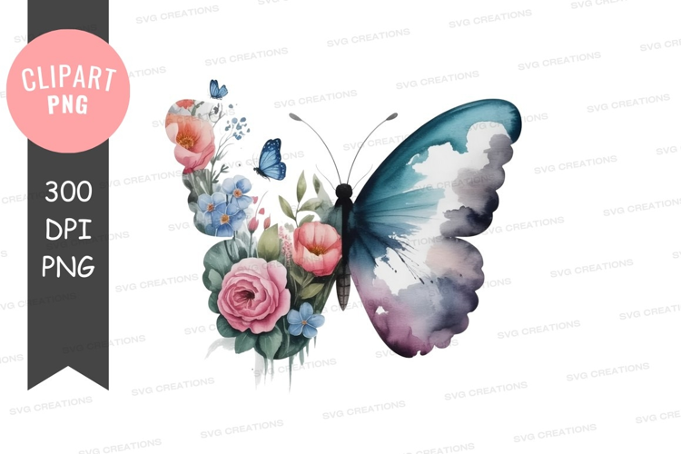 Watercolor butterfly with flowers png example image 1