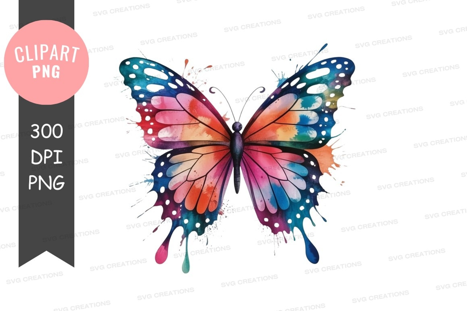 Depicted In A Watercolor-like Style With Splashes A Vibrant And Artistic Illustration Of A Butterfly Giving It A Dynamic And Lively Appearance