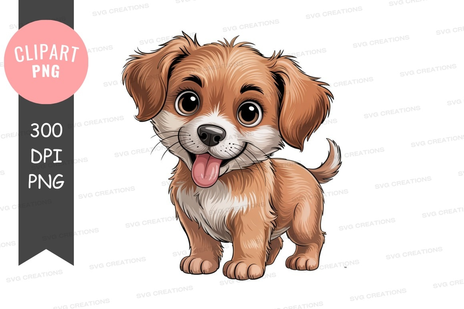 Expressive Eyes A Cute And Playful Cartoon Puppy With Its Tongue O Standing On All Fours The Puppy Has Brown And Whi