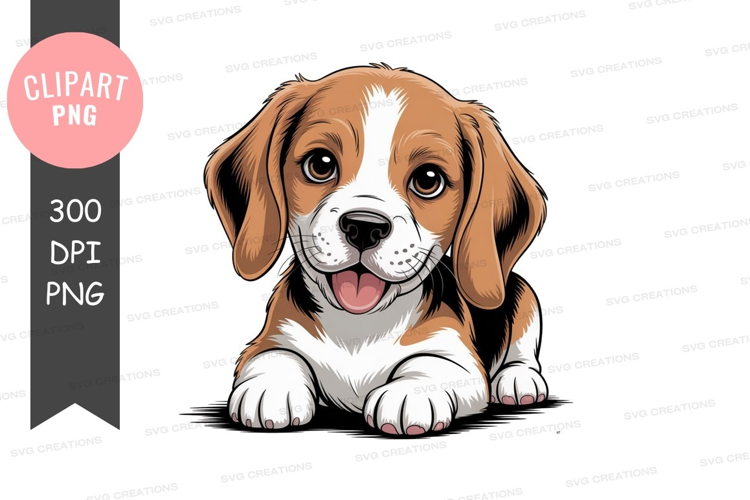 White Expressive Eyes And Black Fur A Cute And Playful Puppy Lying Down With Its Tongu Depicted In A Cartoon Style The Puppy Has A Mix O And Is Looking Directly At The Viewer With Large