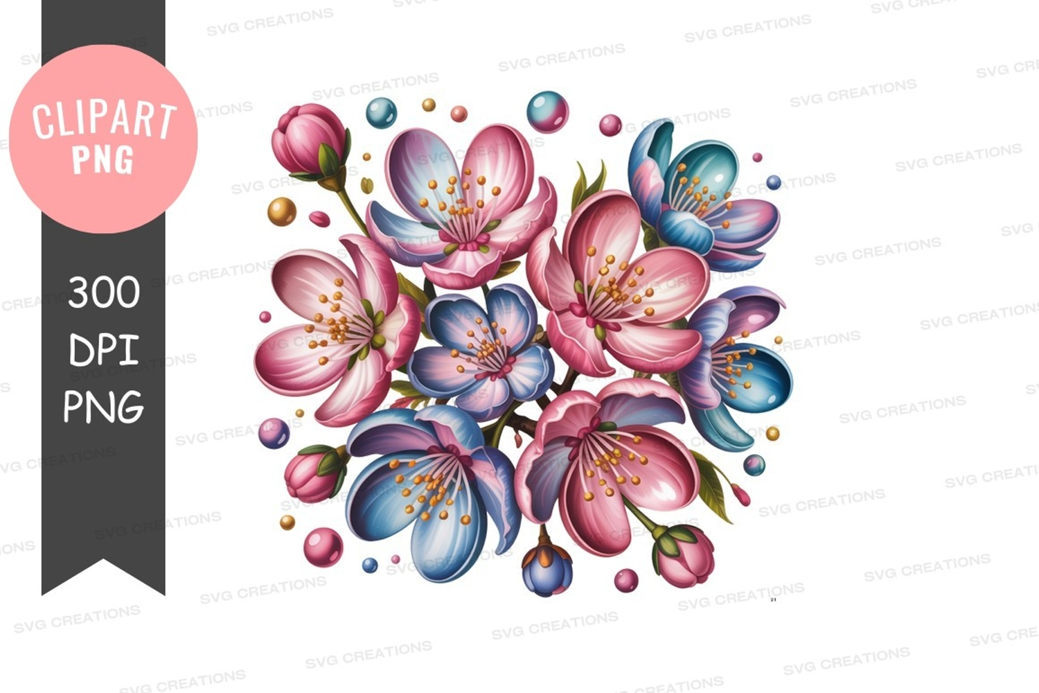 Decorative Illustration Spring Pink Nature Flowers Clipart Blue Bouquet Bubbles