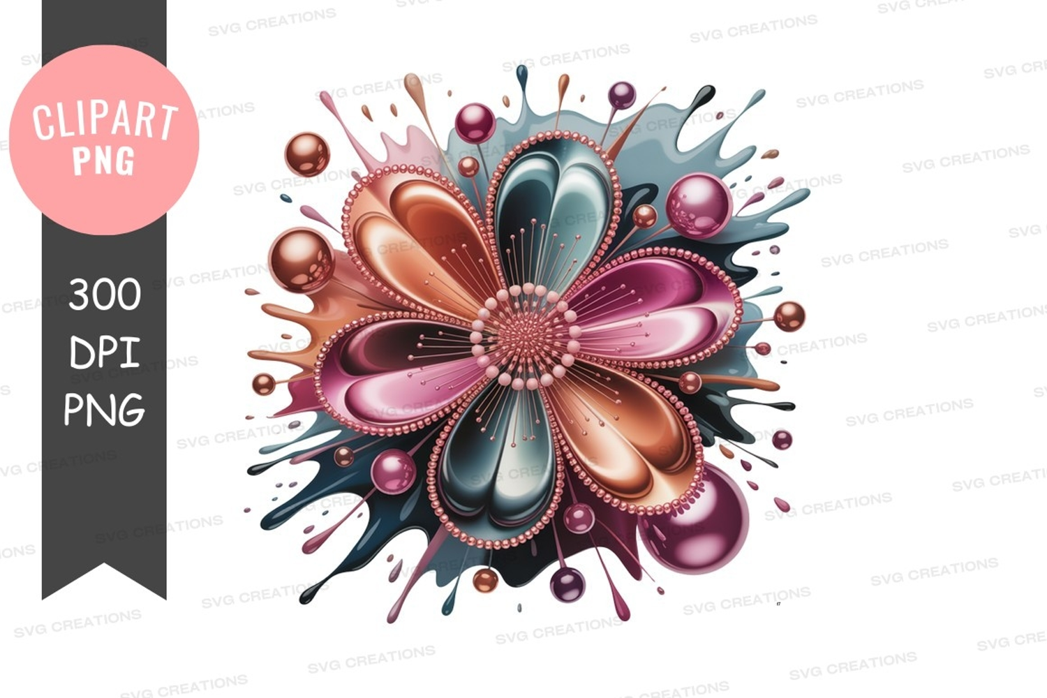 Pink Colorful Flower Abstract Purple Blue Metallic Paint Splatter
