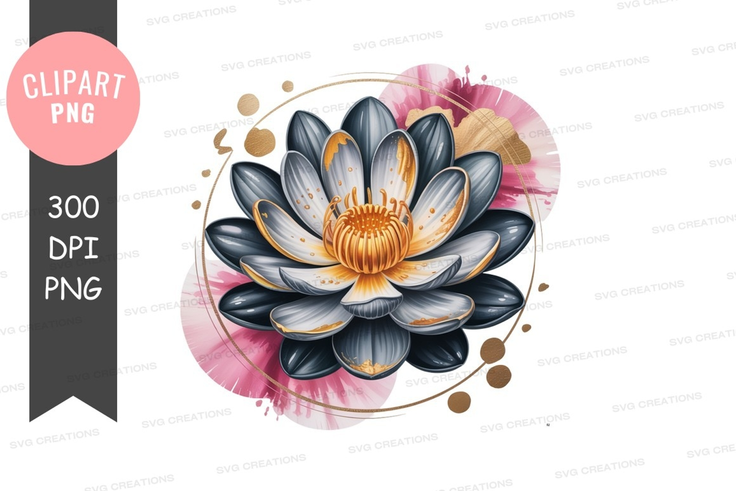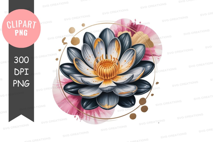 Flower Clipart Watercolor Background Blue Flower Pink And Gold Nature Illustration Lotus Flower Lotus Illustration Flower Art Ornamental Design Golden Center