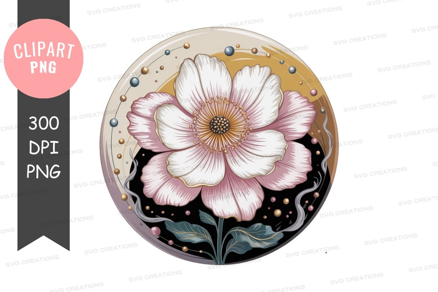 Decorative Illustration Ornamental Flower Clipart Pink Flower White Flower Golden Border Intricate Designs