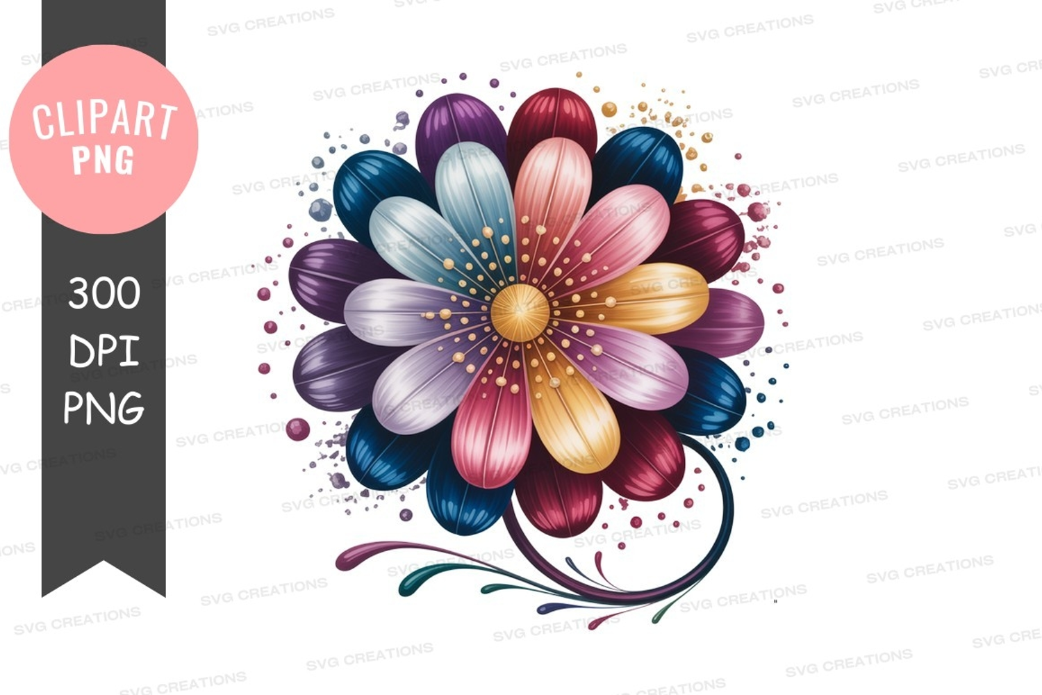 Illustration Swirls Colorful Artistic Flower Splatters Vibrant Petals Disc Central