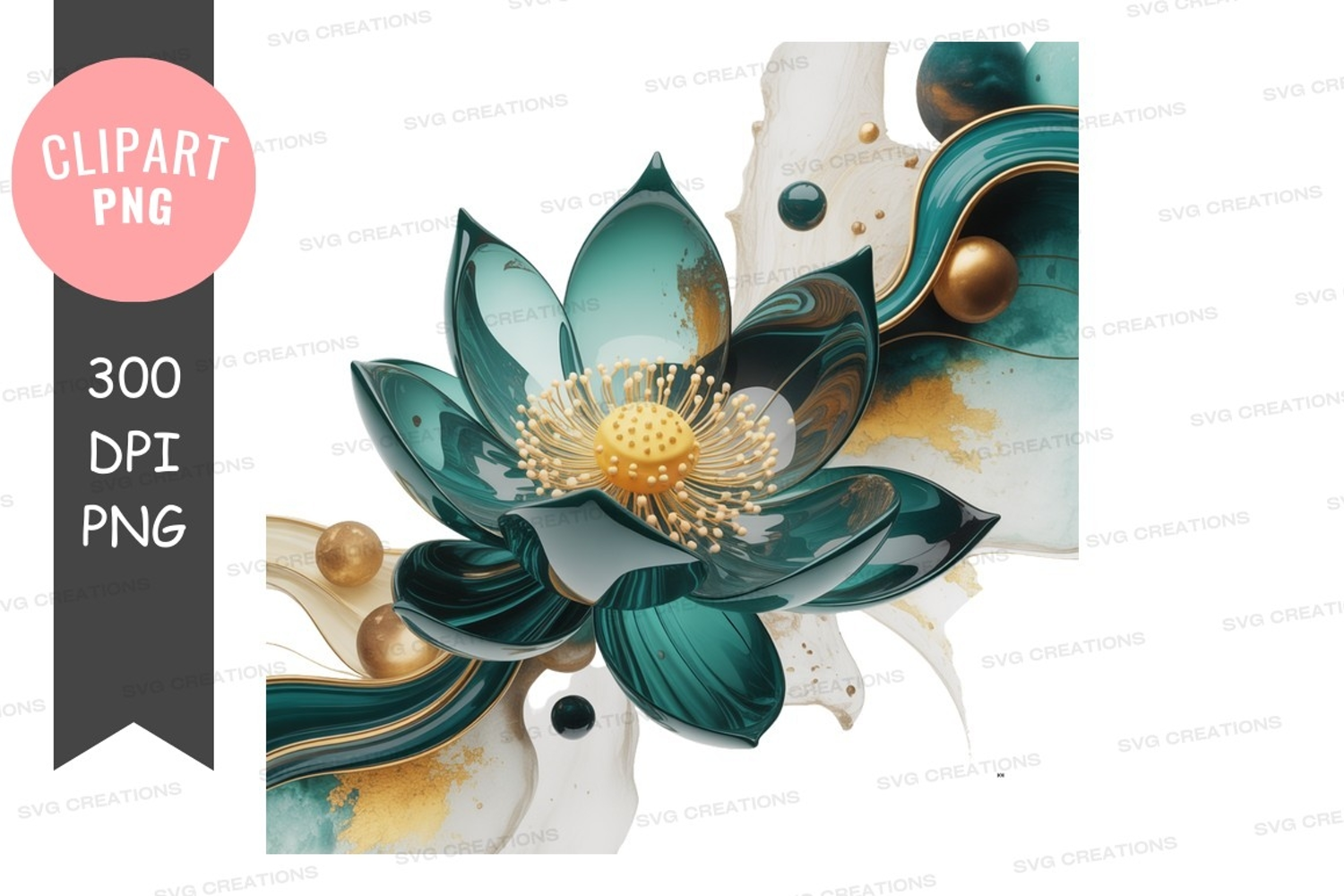 Swirl Gold Nature Elegance Flower Golden Pattern Teal Lotus Digital Art
