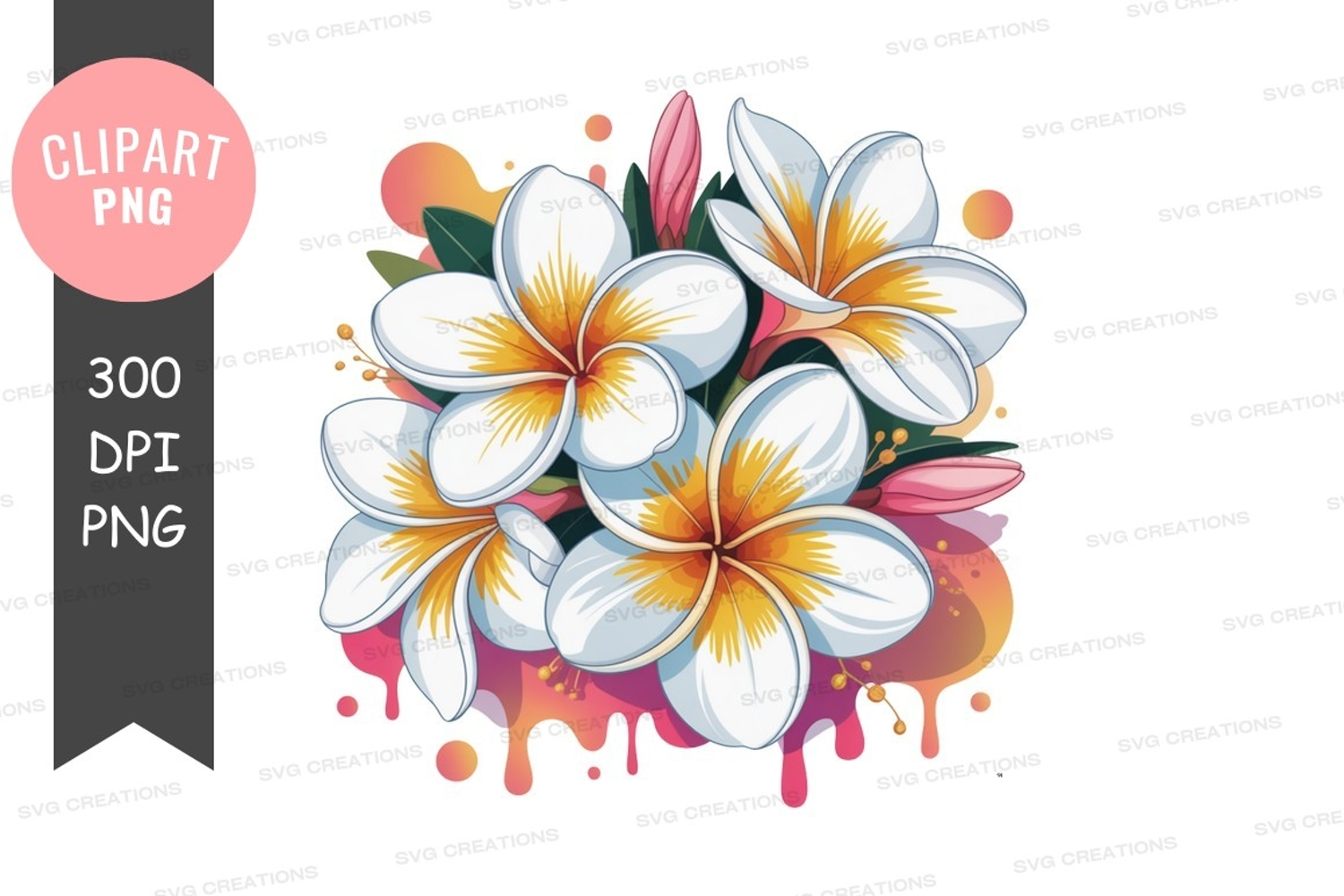 White and yellow tropical flowers clipart png example image 1