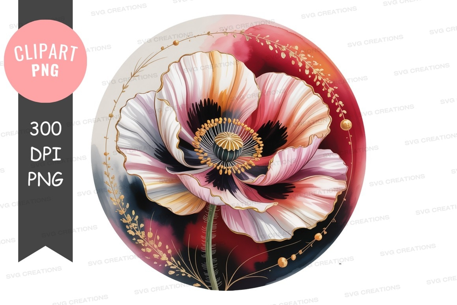 Illustration Artistic Flower Gradient Golden Clipart Leaves Poppy Petals Luxurious
