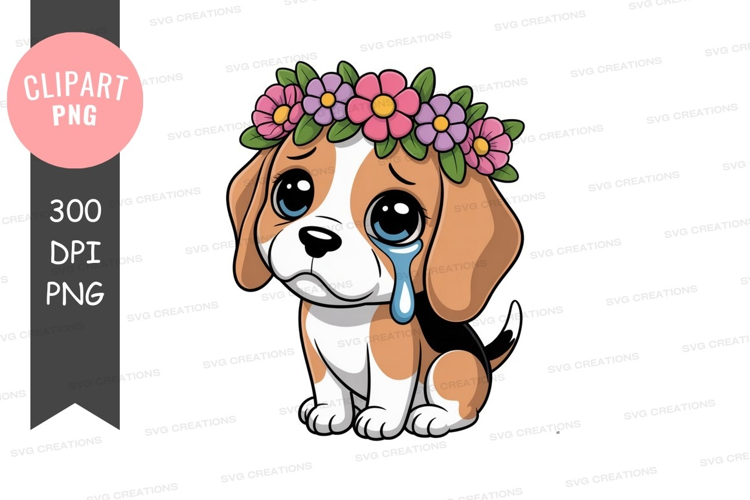 Crying puppy with flower crown example image 1