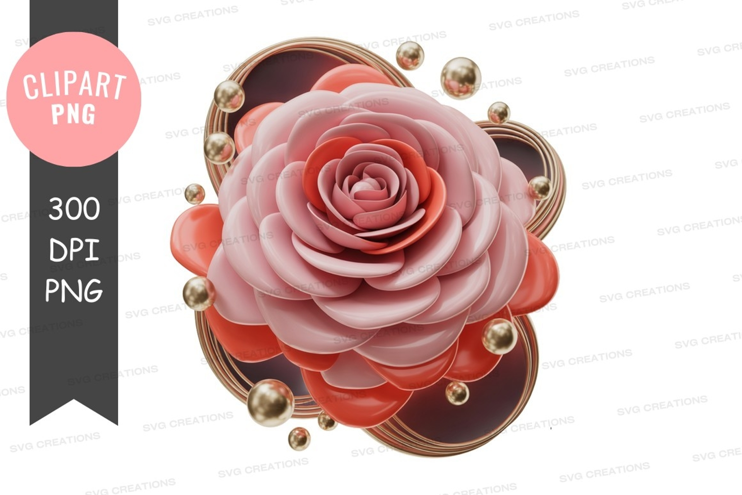 Decorative Ornament Gold Pink Flower Golden Clipart Rose Png Accent