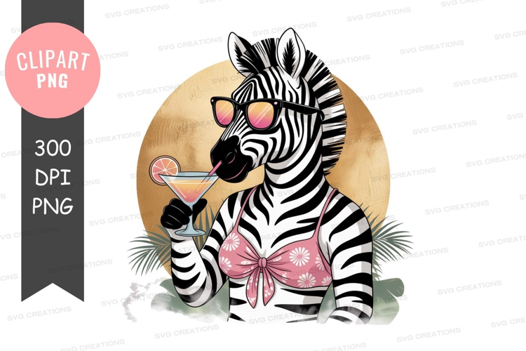 Illustration Funny Animal Party Bikini Zebra Cocktail Sunglasses